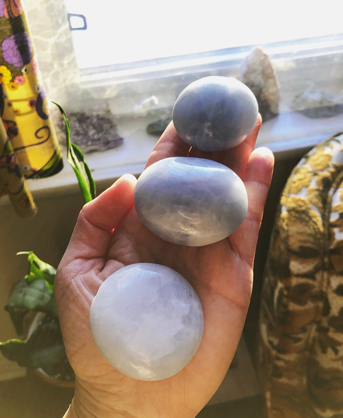 One intuitively chosen Blue Calcite Palm Stone. Approximately 5-7cm.