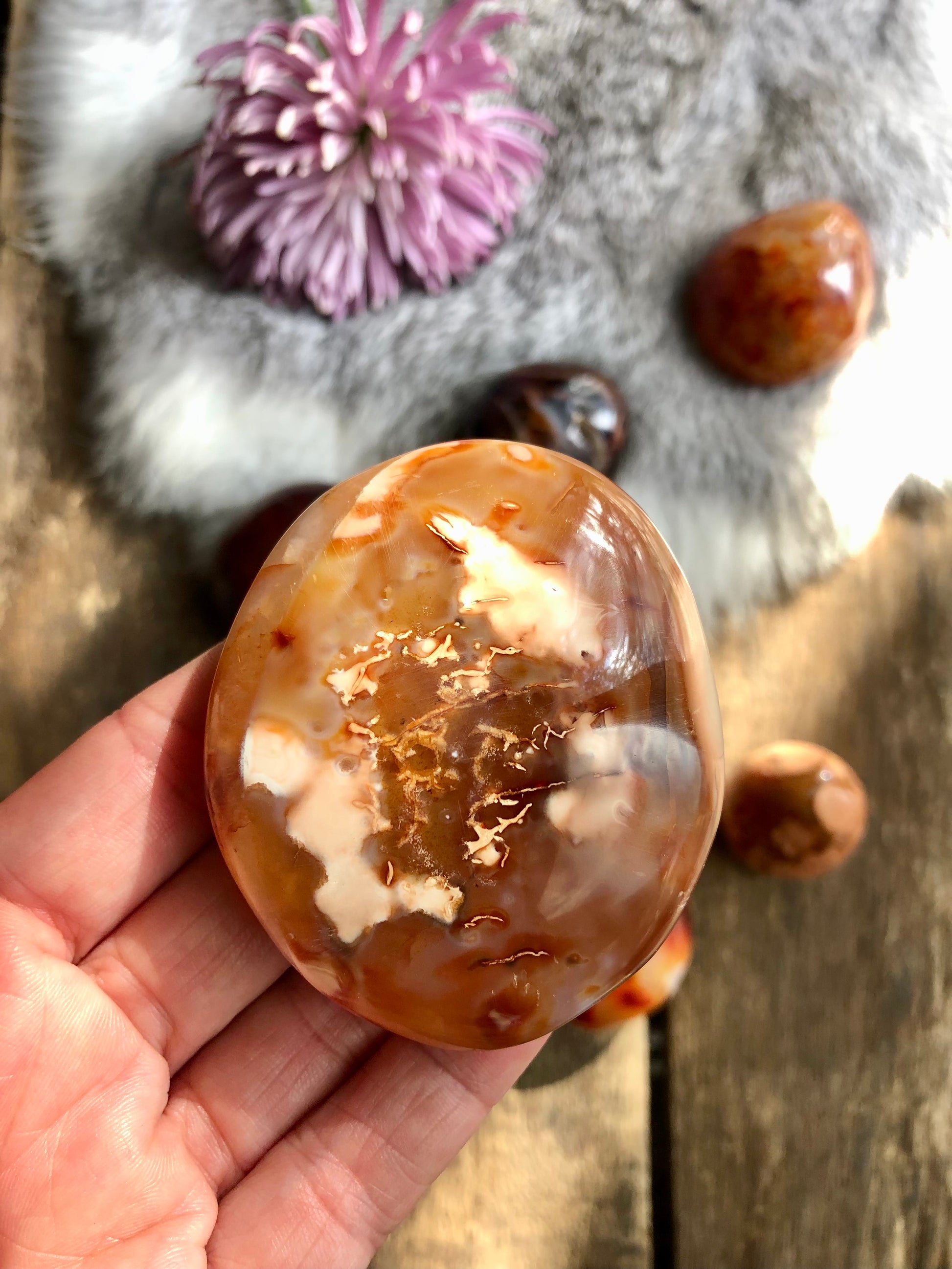 One intuitively chosen Carnelian palm stone. Approximately 6-7cm.