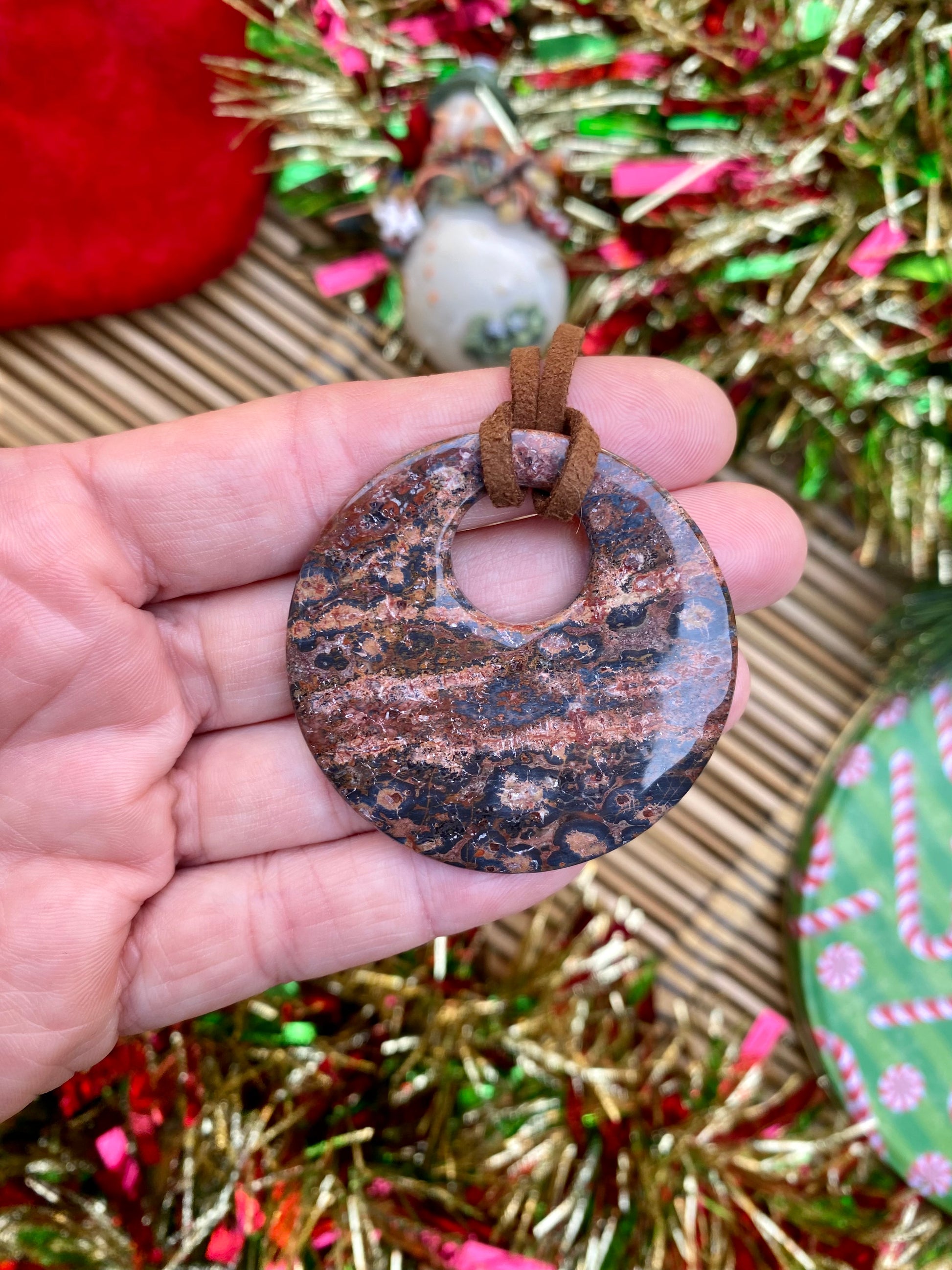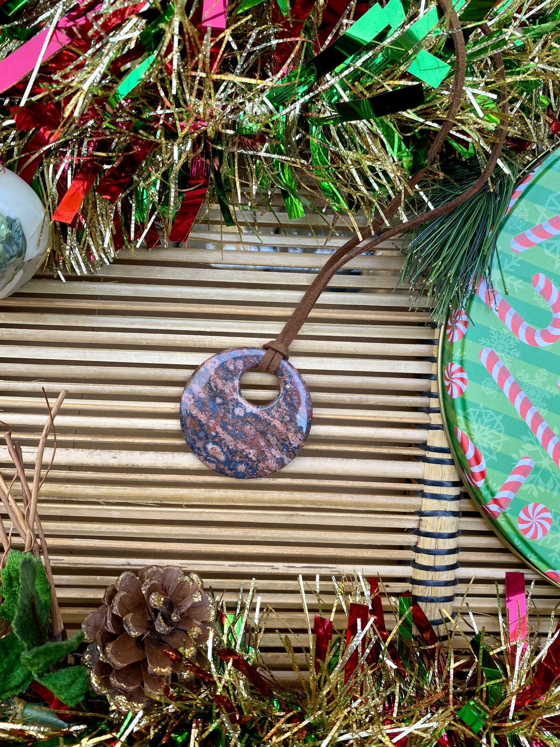 5x5cm Leopard Jasper on 50cm adjustable leather suede.