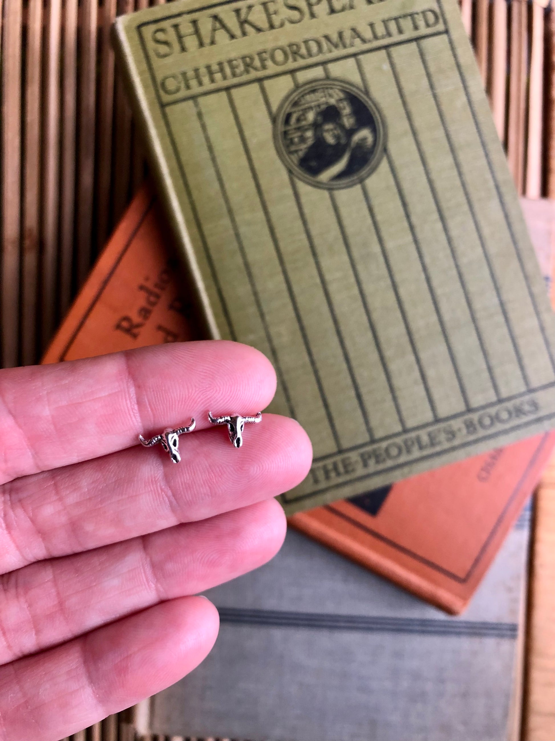 Sterling silver longhorn stud earrings with butterfly backs.