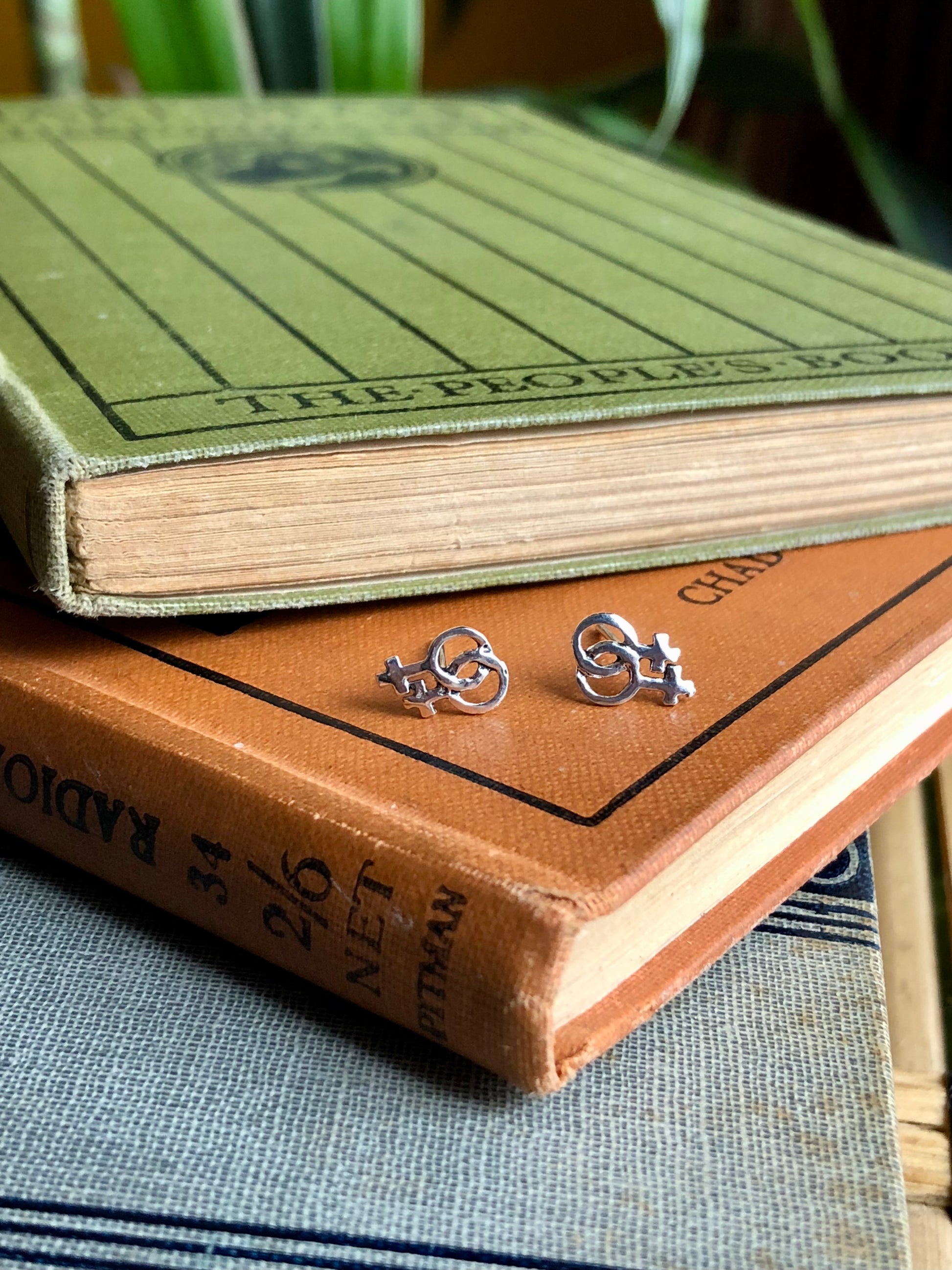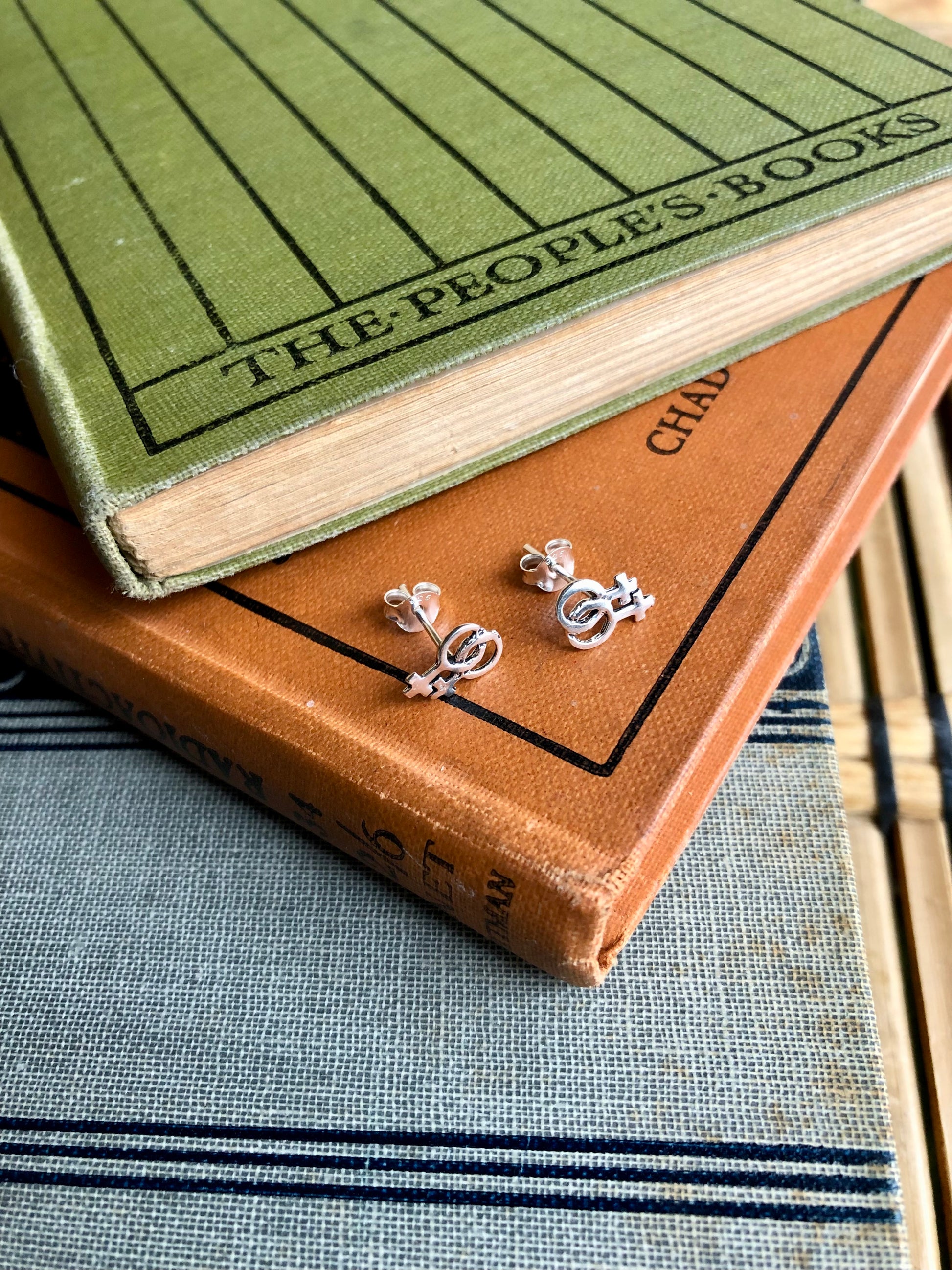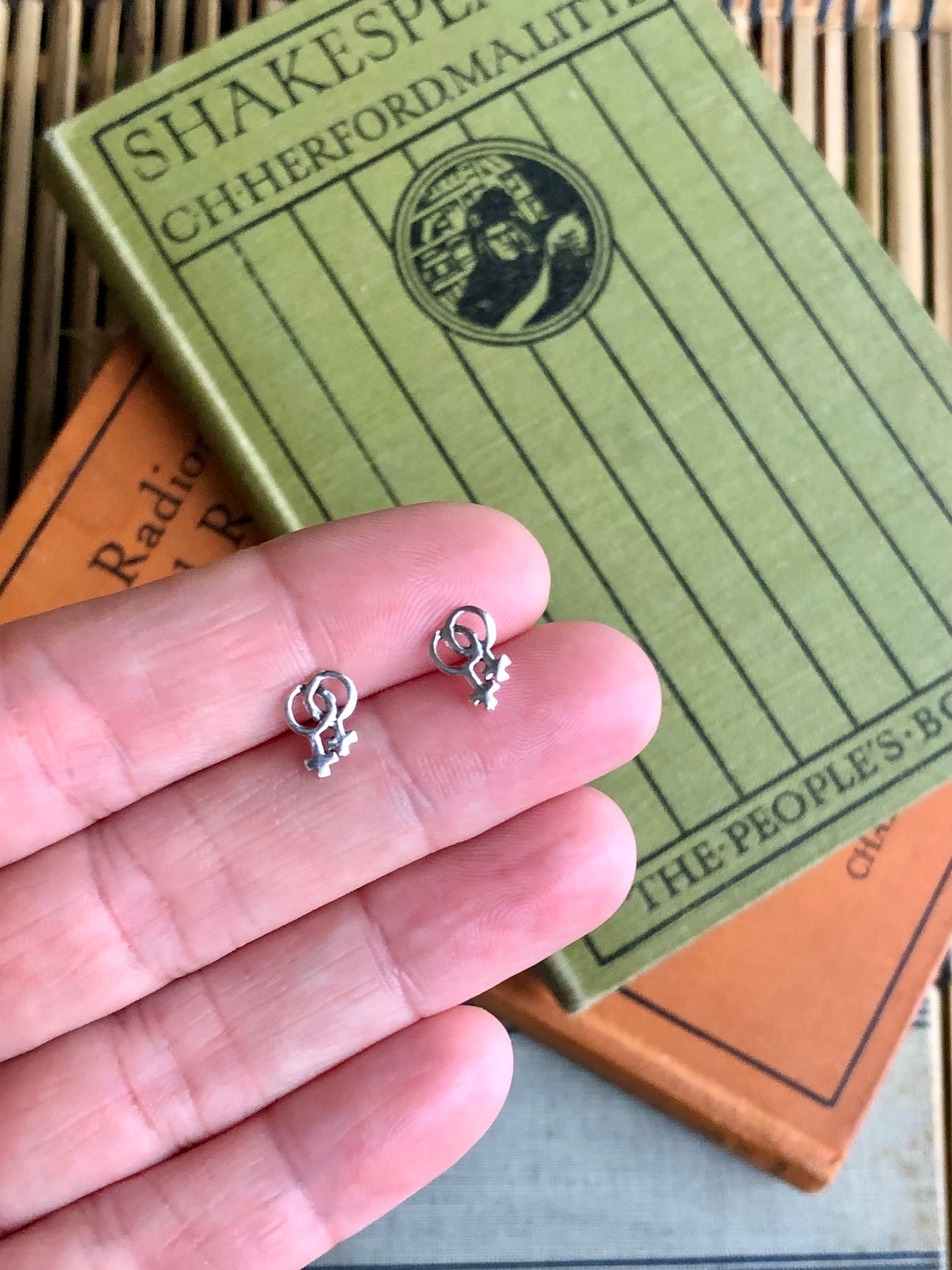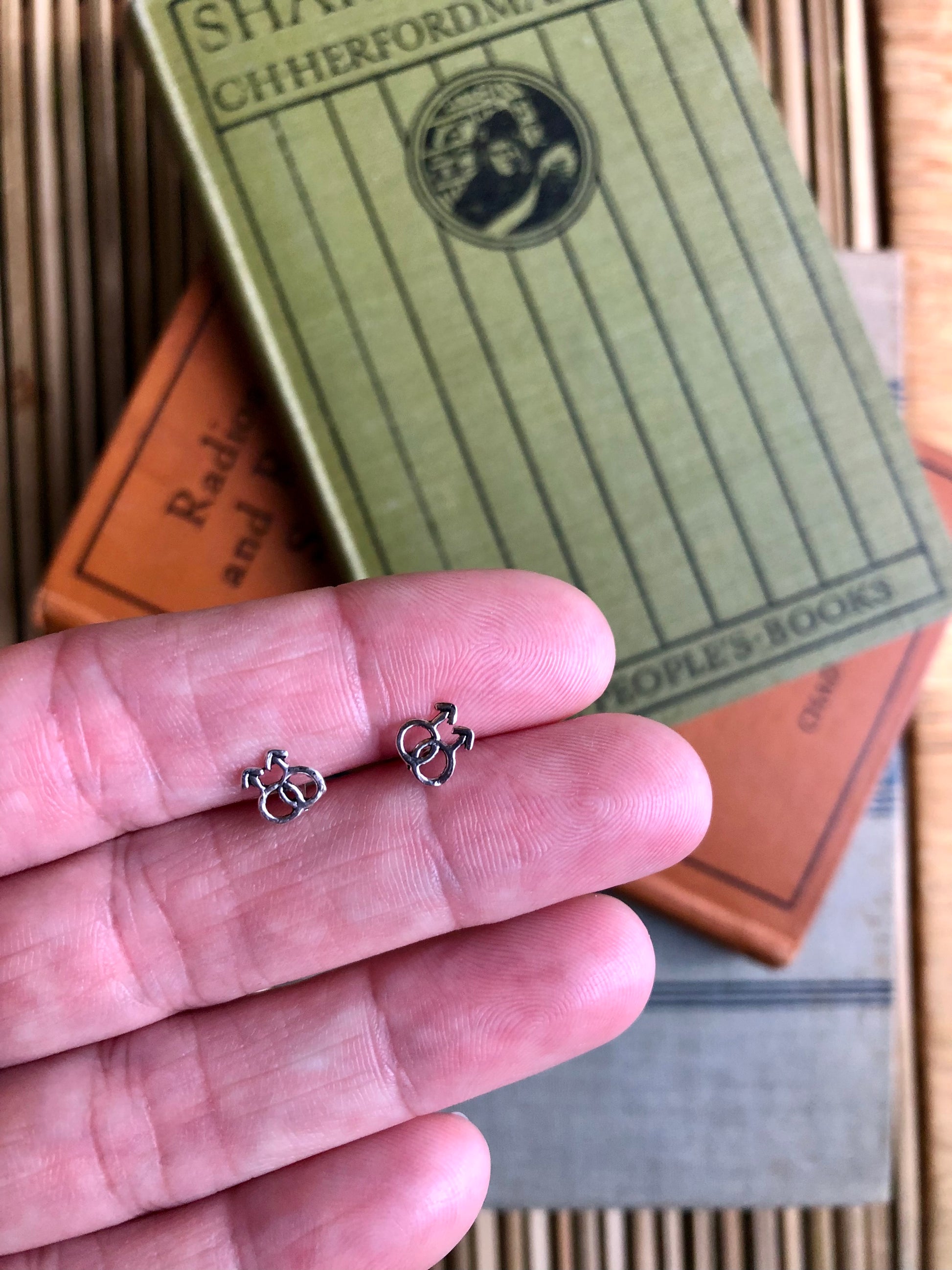 Sterling silver love studs, available in Mars or Venus versions with butterfly backs.