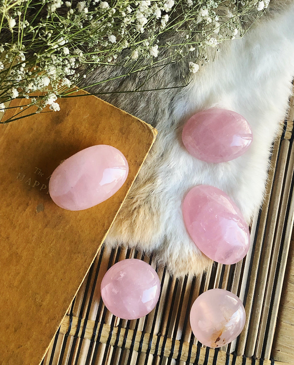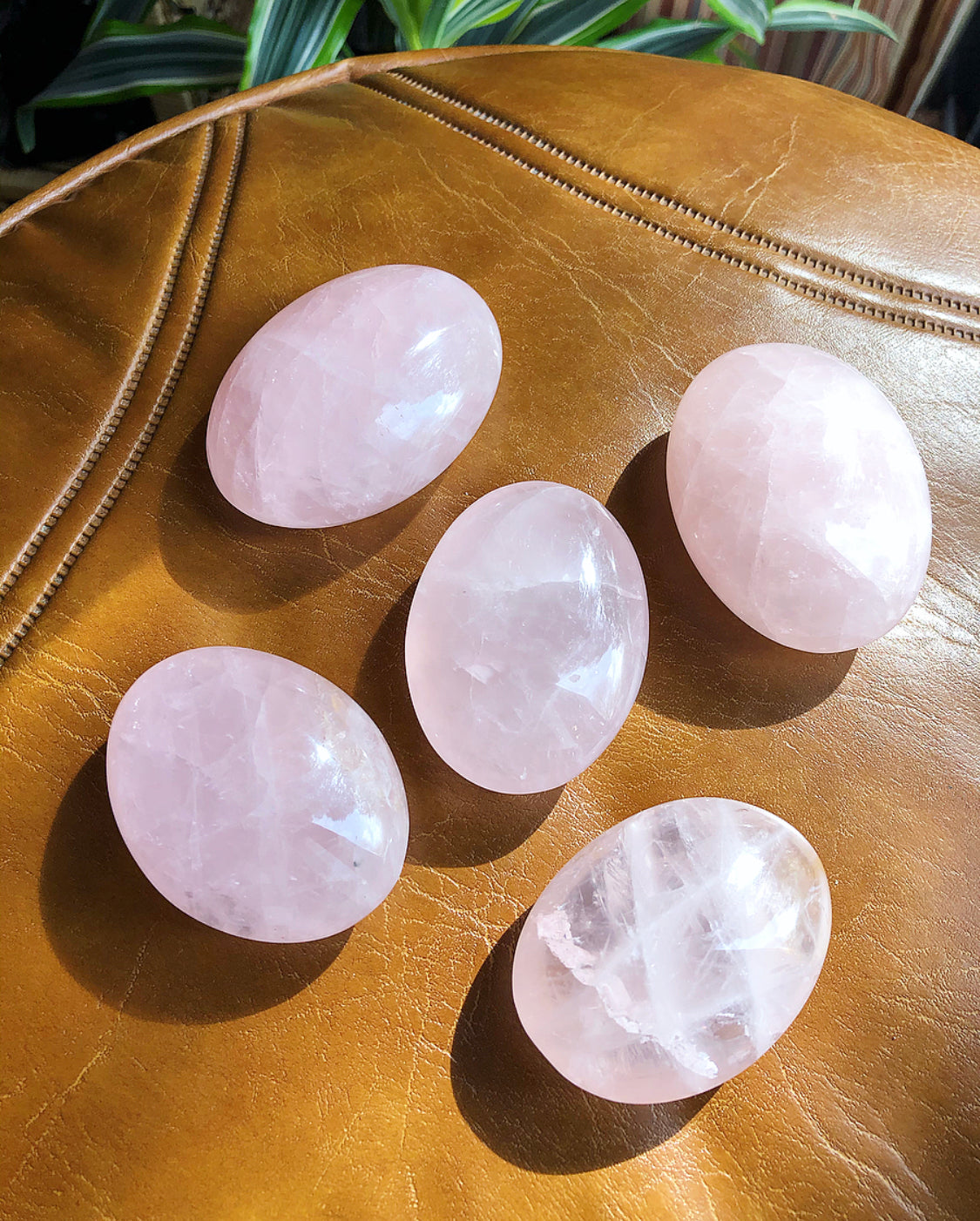 One intuitively chosen Rose Quartz palm stone. Approximately 4-5cm.